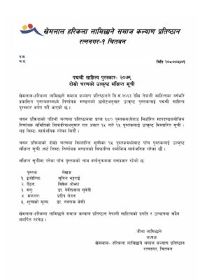 खेमलाल- हरिकला लामिछाने समाज कल्याण प्रतिष्ठान अध्यक्ष जीवा लामिछानेले दिनुभएको जानकारी अनुसार