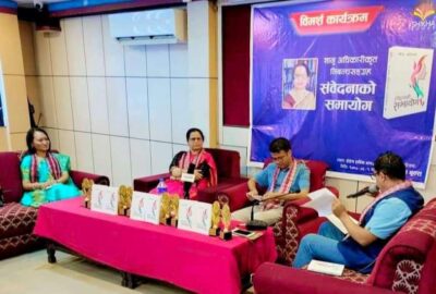 काठमाडौ, ०८० भाद्र ९ । हार्दिक होटल, काठमाडौंमा आज निबन्धकार ज्ञानु अधिकारीको आत्मपरक निबन्धसङ्ग्रह ‘संवेदनाको समायोग’ कृतिमाथि गम्भीर विमर्श कार्यक्रम सम्पन्न भयो ।
