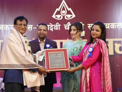 श्री लुनकरणदास- गंगादेवी चौधरी साहित्य कला मन्दिर द्वारा आफ्नो ३० औं वार्षिकोत्सब को उपलक्ष्यमा आयोजित कार्यक्रममा प्रमुख अतिथि प्रसिद्ध सिनेजगतकी नायिका मनिषा कोइराला, प्रा.विद्यानाथ उपाध्याय भट्ट, डा.विष्णु विभू घिमिरे, आयोजक संस्थाका संरक्षक वसन्त चौधरी, अध्यक्ष मेघा चौधरी, सङ्गीत शोधकर्ता झुमा लिम्बूले संयुक्त रूपमा विमोचन गर्नु भएको हाे ।