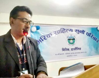 मिरिक / ३ नोभेम्बर २०२३ अर्थात् १७ कात्तिक २०८० शुक्रवारका दिन भारतको दार्जिलिङ जिल्लाको मिरिक नगरपालिकामा स्थापित साहित्यिक संस्था साहित्य सुनौँ परिवार मिरिकको नियमित कार्यक्रमअन्तर्गत एक वृहत् साहित्यिक कार्यक्रम सम्पन्न भएको हो ।