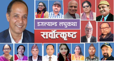 उदयपुर, ०८० कात्तिक २० । लघुकथा प्रतिष्ठान, नेपालद्वारा दोस्रो वार्षिकोत्सवका अवसरमा आयोजित ‘बुढ्यौली विषयक लघुकथा अभियान–२०८०’ मा ‘डगल्यान्ड’ शीर्षकको लघुकथा सर्वोत्कृष्ट भएको छ ।