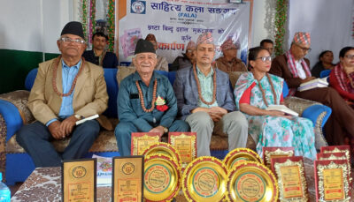 दमक, झापा २०८० मङ्सिर १६। साहित्य कला सङ्गम, दमकको आयोजनामा कवि विन्दु दाहाल ‘मूक दर्शक’को २४१ भन्दा बढी छन्दमा लेखिएका २८७ वटा भन्दा बढी कविता सङ्कलित ‘अन्तर्वोध’को लोकार्पण कार्यक्रम सम्पन्न भयाे ।