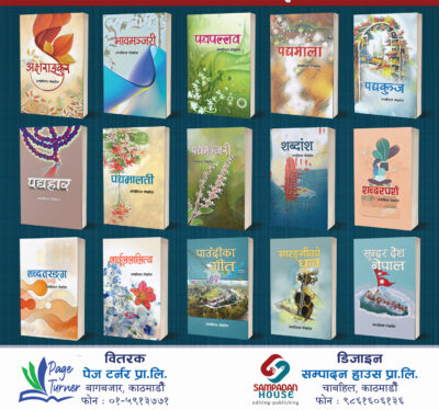 आज लोकार्पित कृति पेज टर्नर प्रा. लि, अनुपम सिर्जना प्रतिष्ठान र कर्मदा सिर्जना मञ्च नेपालले प्रकाशित गरेका हुन् । सबै कृतिको विक्रीवितरणको जिम्मा पेज टर्नरले लिएको छ । यी कृतिको डिजाइन तथा लेआउट सम्पादन हाउसले गरेको हो ।