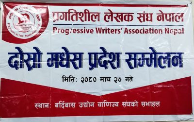महोत्तरी, बर्दिवास, २०८० माघ २७ गते । प्रगतिशील लेखक संघ नेपाल मधेश प्रदेशकोे दोश्रो प्रदेश सम्मेलन शनिबार नयाँ नेतृत्व चयन गर्दै समापन भएको छ ।