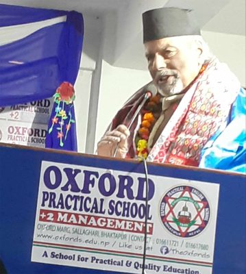 अक्सफोर्ड प्राक्टिकल स्कुल सल्लाघारी भक्तपुरमा हास्यव्यङ्ग्यकार तथा नेपाल लगायत विश्वभरिका वृद्धवृद्धाका हक हित अधिकार र समस्याका विषयमा सशक्त रूपले क्रियाशील रहनुभएका आदरणीय व्यक्तित्व कृष्णमुरारि गौतम चट्याङ मास्टरलाई सम्मानित गरिएकाे हाे ।