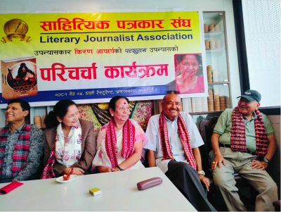 काठमाडाैं, २०८१ जेठ २५ । साहित्यिक पत्रकार संघद्वारा आज यहाँ उपन्यासकार किरण आचार्यको दोस्रो उपन्यास परशुरामको परिचर्चा कार्यक्रमको आयोजना गरियो ।
