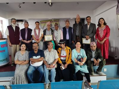 सो कार्यक्रम स्रष्टा उत्तम विचारले सहजकर्ताको भूमिका निर्वाह गर्नुभएको थियो । अन्त्यमा अध्यक्ष थापाले अग्रज स्रष्टाको सम्मान गर्ने अवसर पाउँदा आफू र संस्थासमेत सम्मानित भएको धारणा व्यक्त गर्दै हालसम्म अठहत्तर अग्रज तथा विशिष्ट स्रष्टालाई स्रष्टा सम्मानले, सात जनालाई साहित्य सम्मानले तथा ४०० भन्दा बढीलाई कदर-पत्रले सम्मानित गर्न पाउँदाको खुशी व्यक्त गर्नुकासाथै उपस्थित सम्पूर्ण स्रष्टा प्रति हार्दिक आभार व्यक्त गर्नुभयो ।
