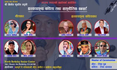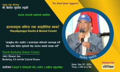क्यालिफोर्नियामा यहि डिसेम्बर महिनाको ७ तारिकमा पहिलो पटक हास्यव्यङ्ग्य कविता तथा सांगीतिक कन्सर्टको आयोजना गरिएको छ ।