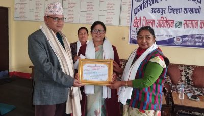 कार्यक्रममाप्रमुख अतिथि शर्मा र विशिष्ट अतिथि लेकालीले सम्मानित हुनु हुनेहरुलाई दोसल्ला ओढाएर सम्मानपत्र सहित सम्मानित गर्नु भएको थियो ।