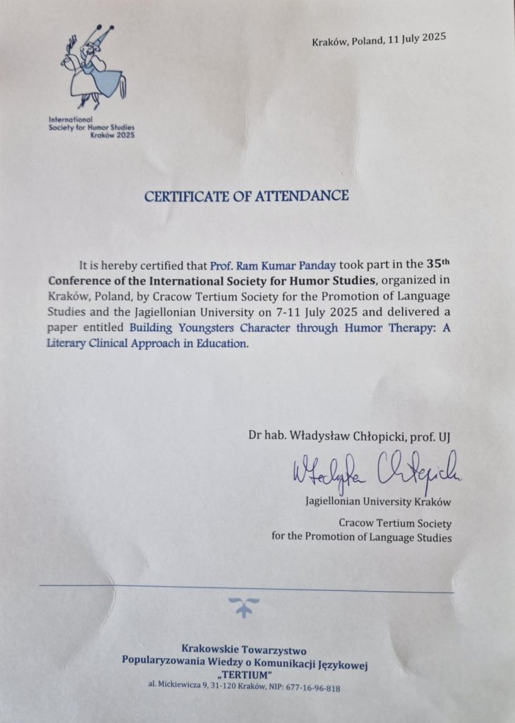 विविध पक्ष्यमा अनुसन्धानमूलक पेपर प्रस्तुत गरिएकाे उक्त सम्मेलनमा नेपालबाट निमन्त्रित प्राध्यापक तथा हास्यव्यङ्ग्यकार रामकुमार पाँडेले भाग लिनु भएकाे थियाे ।