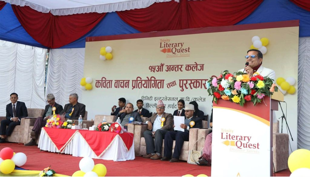काठमाडाै, २०८२ मङ्सिर २६ । ट्रिनिटी इन्टरनेसनल कलेज डिल्लीबजारमा पन्ध्रौँ अन्तरकलेज कवितावाचन प्रतियोगिता तथा पुरस्कार वितरण समारोह सम्पन्न भएको छ।