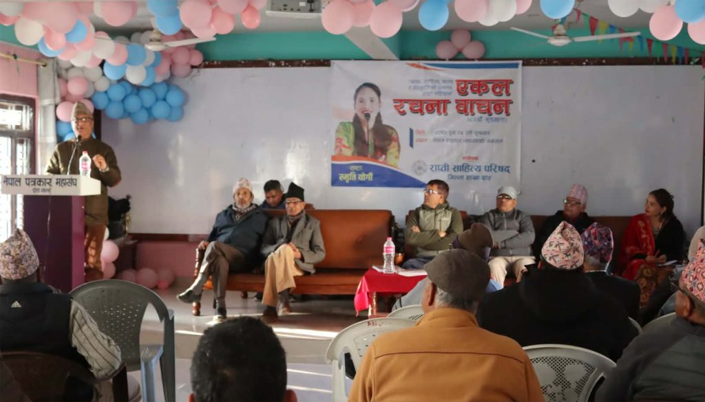 दाङ, २०८२ पुस २५ । राप्ती साहित्य परिषद् जिल्ला शाखा दाङले आयोजना गर्ने नियमित एकल रचना वाचनको ८३ औँ शृङ्खलामा साहित्यकार स्मृति योगीले रचना वाचन गरेकी छिन् ।