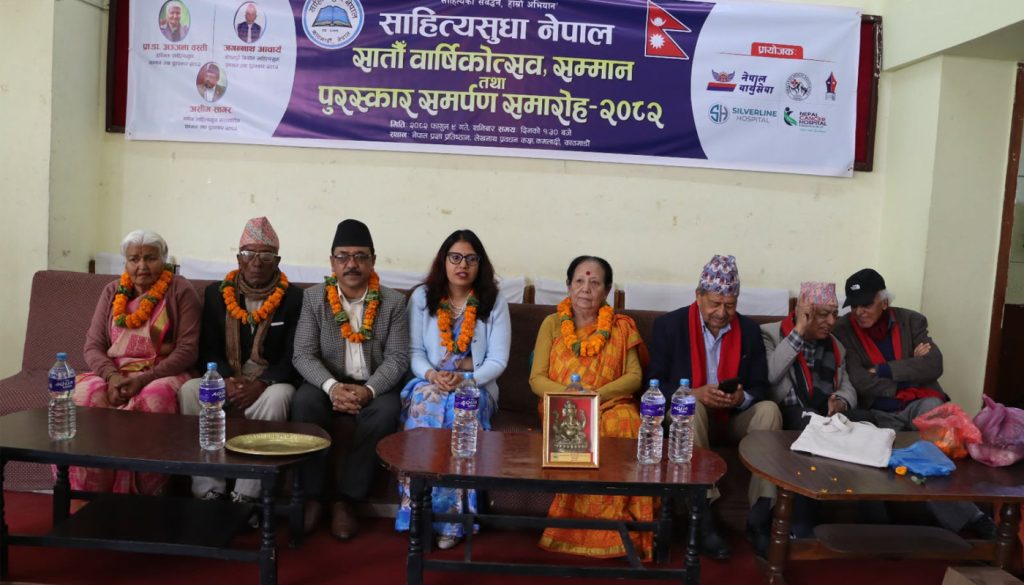 काठमाडाैं । साहित्यसुधा नेपालले आफ्नो सातौँं वार्षिकोत्सवको अवसरमा तीन स्रष्टा व्यक्तित्वहररूलाई सम्मान तथा पुरस्कार समर्पण गरेको छ ।